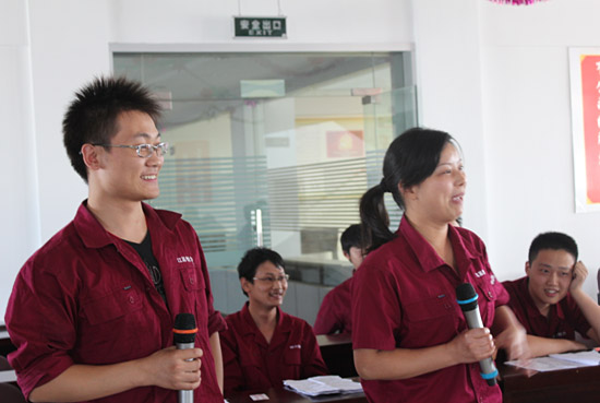 比賽采用"一站到底"的抽題角逐方式,本著公平、公正、合理和重在參與、學習提高的原則,邀請了公司財務部葉建明、企管部蘇棟,作為本次競賽的評委,對比賽全過程進行記錄、監(jiān)督和評定。競賽中,參賽人員緊緊圍繞120條競賽題,個個精神抖擻、斗志昂揚,盡情展現(xiàn)自己的風采,現(xiàn)場氣氛異常活躍。每個隊員都鉚足力氣奮力答題,掌聲、笑聲、歡呼聲此起彼伏。試制車間參賽隊員劉敏最是"吸引"眼球,準備充分的她真正做到了"一站到底",120條競賽題對答如流,其超強記憶及不失一字的精彩發(fā)揮贏得陣陣喝彩。