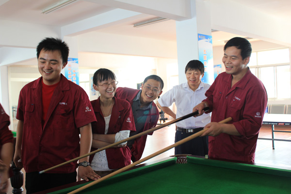 今年以來,在靖江市總工會、城南辦事處黨委、工會的支持下,企業(yè)投入一定資金,在內(nèi)部建立“全國職工書屋”和職工活動室。乒乓球、桌球、多功能健身器等各類健身器材硬件配套設(shè)施琳瑯滿目,應(yīng)有盡有。員工們在勞累的工作之余休閑娛樂有了好去處,鍛煉身體的同時(shí)也滿足了其自身的精神需求。